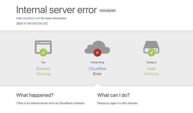 Vào khoảng 6h tối ngày 18/11 (giờ Việt Nam), Cloudflare - công ty cung cấp dịch vụ bảo mật và tối ưu hoá lưu lượng truy cập internet cho hàng nghìn website - đã gặp phải sự cố nghiêm trọng trên hệ thống mạng toàn cầu. Vấn đề này đã gây ảnh hưởng trực tiếp đến hoạt động của nhiều website và ứng dụng nổi tiếng, bao gồm như Canva, ChatGPT, X (Twitter), Grok, hệ thống thanh toán Paypal, Spotify...