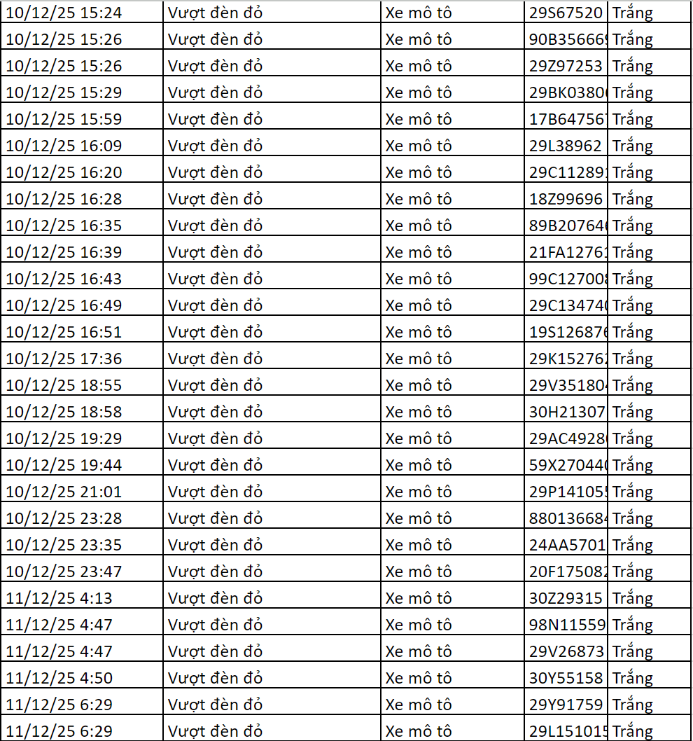 Bên cạnh đó, qua trích xuất dữ liệu từ hệ thống camera A.I thí điểm tại khu vực nội đô Hà Nội, cụ thể tại nút giao Phạm Văn Bạch - Hoàng Quán Chi, trong khoảng thời gian từ 12h00 ngày 10/12/2025 đến 12h00 ngày 11/12/2025, hệ thống đã tự động phát hiện thêm 134 trường hợp vi phạm.
