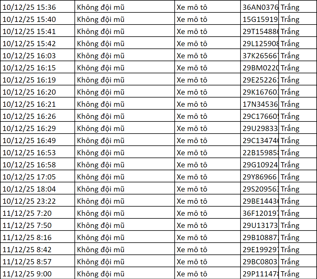 Theo thông tin từ Phòng Cảnh sát giao thông Công an tỉnh Bắc Ninh, trong khoảng thời gian từ ngày 30/11 đến ngày 07/12/2025, đơn vị đã phát hiện 78 trường hợp xe mô tô vi phạm trật tự an toàn giao thông thông qua hệ thống camera giám sát và phương tiện kỹ thuật nghiệp vụ.