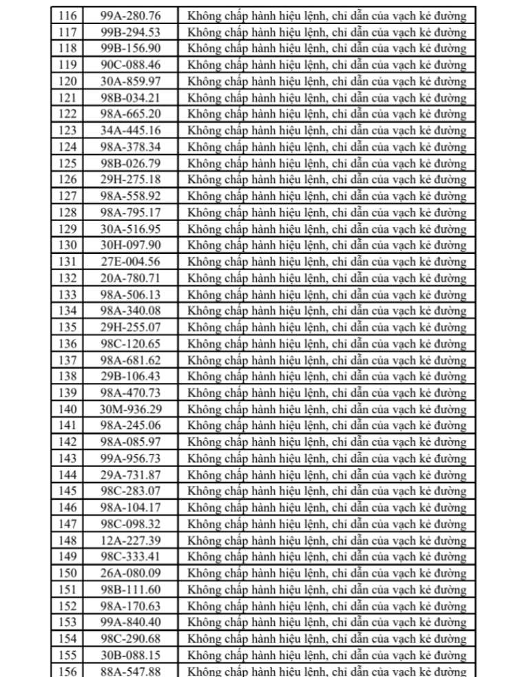 Đồng thời, cơ quan chức năng đề nghị các chủ phương tiện nằm trong danh sách nhanh chóng liên hệ với đơn vị chức năng để giải quyết vi phạm theo quy định tại Nghị định 168. Việc chủ động xử lý sẽ giúp tránh phát sinh các vấn đề liên quan đến đăng kiểm, xử phạt bổ sung hoặc các thủ tục hành chính khác.