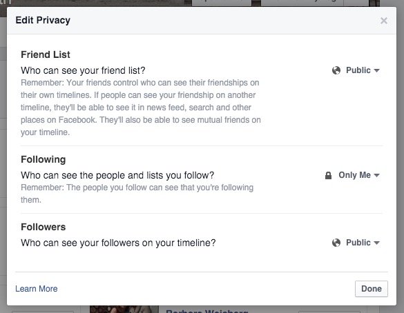 Bạn cũng có thể chặn không để những người lạ xem được danh sách bạn bè của mình trong mục Edit Privacy.