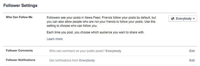 Người dùng Facebook có thể kết nối với nhau theo 2 cách đó là trở thành bạn bè hoặc người theo dõi. Trong khi trở thành bạn bè thì 2 người dùng có thể thấy được các thông tin chia sẻ rộng rãi thì người được theo dõi sẽ không thấy được các cập nhật của người theo dõi. Bạn có thể tắt chức năng theo dõi tài khoản của mình bằng tùy chọn Followers ở mục Account Settings.