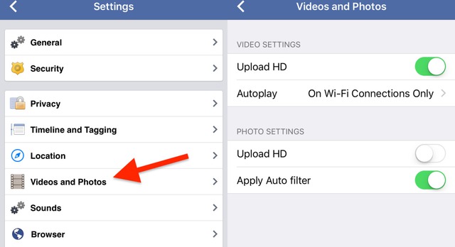 Chức năng tự động chơi video của Facebook chắn chắn sẽ làm nhiều người cảm thấy khó chịu và làm điện thoại tốn pin. Điều may mắn là bạn có thể tắt nó đi bằng cách chọn More > Videos and Photos rồi chuyển trạng thái sang Never hoặc chỉ tự động chạy video khi kết nối với Wi-Fi.