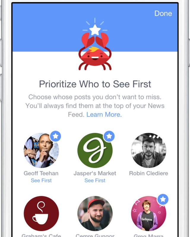 Bạn có thể theo dõi những trang hoặc người nổi trên trên Facebook bằng cách truy cập vào tùy chọn Settings > More > News Feed Preferences trên ứng dụng Facebook. Người hay trang nổi tiếng đã được theo dõi sẽ có thêm 1 ngôi sao màu xanh ở góc phải. Với những người này, thông tin từ họ sẽ luôn được ưu tiên hiển thị trên News Feed của bạn.