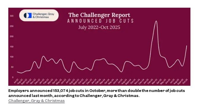 Riêng trong tháng 10/2025, các doanh nghiệp Mỹ đã sa thải đến 153.000 lao động, cao gấp đôi so với tháng 9.