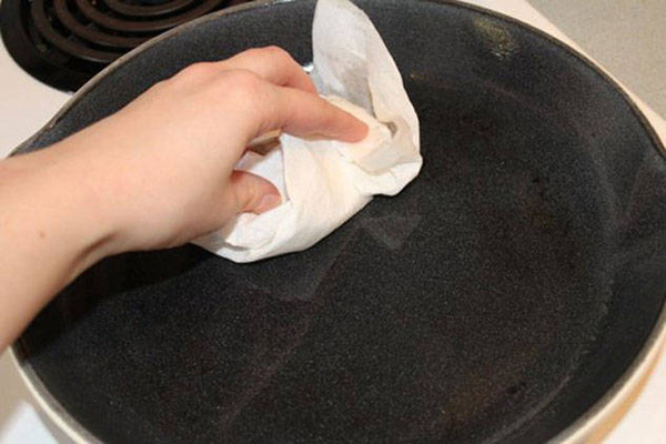 Làm sạch chảo bằng dầu dừa