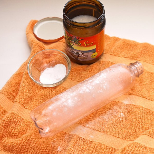 Những phần giá đính trên chai nọ, đồ dùng nhiều lúc rất cứng đầu, khiến món đồ của bạn trông lem nhem, không được trọn vẹn. Để tẩy sạch vết bẩn cứng đầu này, bạn có thể trộn hỗn hợp dầu dừa với baking soda theo tỉ lệ 1: 1 rồi dùng vải mềm, chả hỗn hợp lên chỗ dính keo một lát rồi dùng vải khô lau đi là sạch.