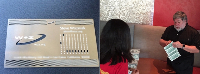 Đương nhiên, cô bé không hề nói quá. Steve Wozniak vốn là người khá cởi mở, thậm chí còn rất sẵn sàng dành thêm vài phút trò chuyện với cô bé Sarina. Chưa hết, Wozniak còn chuẩn bị một món quà cho Sarina cùng anh trai của cô bé: Tấm thẻ kim loại nổi tiếng của ông, đồng 2 USD ông tự tay in lấy cùng 2 cặp kính mát ông yêu thích. Wozniak còn rất thân thiện khi đề nghị ký tặng lên hai chiếc máy tính của 2 anh em.