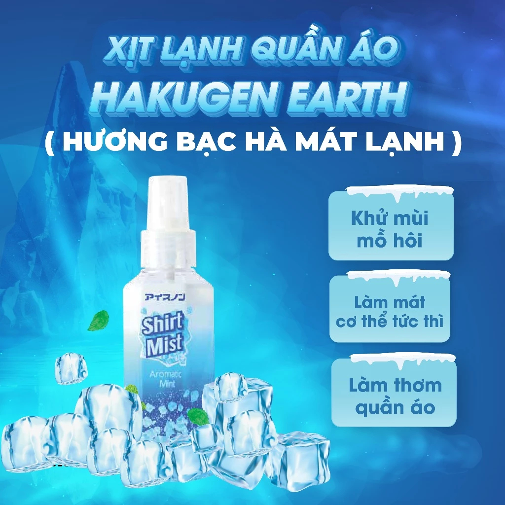 Xịt lạnh quần áo Hakugen Earth Ice Non từ Nhật Bản là giải pháp hạ nhiệt nhanh chóng và tiện lợi. Chỉ cần xịt trực tiếp lên quần áo, thành phần bạc hà sẽ tạo ra cảm giác mát lạnh tức thì, đồng thời hỗ trợ khử mùi mồ hôi và làm thơm vải vóc. Sản phẩm đặc biệt hiệu quả khi sử dụng trước khi ra ngoài hoặc sau khi vận động mạnh. Với giá khoảng 119.000đ cho chai 100ml, đây là món đồ nhỏ gọn, dễ dàng mang theo trong túi xách để "giải cứu" cơ thể khỏi cảm giác hầm bí, nóng nực trong những chuyến đi chơi hay đi làm hàng ngày.