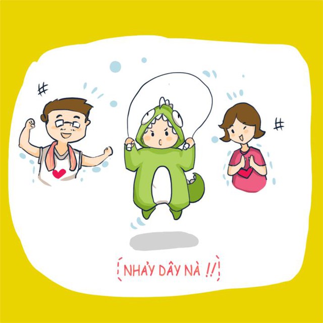 Ba và mẹ hẳn đều đã từng chơi trò này rồi nhỉ? Nhưng mẹ có biết nhảy dây thường xuyên sẽ giúp cơ xương và cột sống của bé được vươn dài, giúp phát triển chiều cao hiệu quả. Nhảy dây còn giúp kích thích những khối cơ lớn, tim và phổi để bé được khỏe mạnh hơn. Ba mẹ hãy cùng chơi hoặc khuyến khích bé chơi thật vui nhé! Chỉ cần một không gian nhỏ và một sợi dây thôi mà!