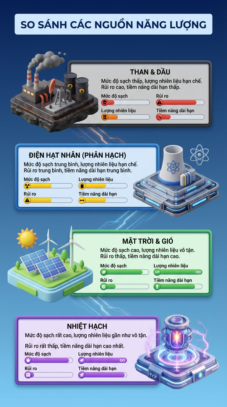 Sạch - mạnh - an toàn - và gần như vô hạn: Đó là lý do con người khát khao năng lượng nhiệt hạch như khát khao một tương lai tươi sáng hơn - Một thế giới có năng lượng sạch, rẻ, vô hạn, không lo biến đổi khí hậu, không lo thiếu điện, và mở ra kỷ nguyên khám phá vũ trụ. Đó không chỉ là giấc mơ khoa học, mà còn là hy vọng để nhân loại sống tốt hơn, bền vững hơn trên hành tinh này.