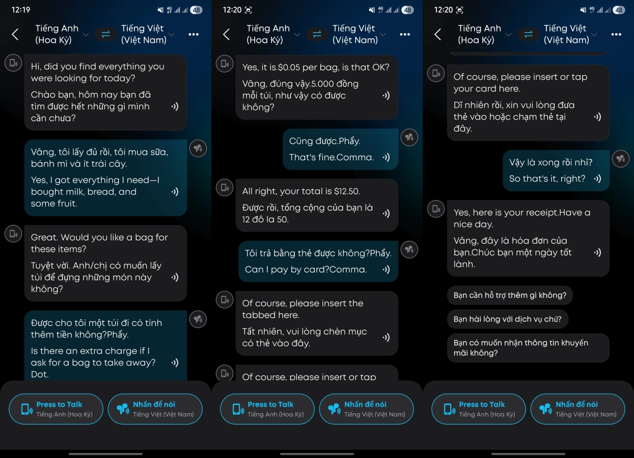 Ngoài ra, app còn có chế độ dịch theo thời gian thực, trong đó hệ thống sẽ lắng nghe nội dung cuộc trò chuyện hoặc lời nói liên tục và dịch sang ngôn ngữ còn lại gần như ngay lập tức. Tính năng này hiện được miễn phí trong giai đoạn đầu, nhưng Anker cũng cho biết có thể sẽ điều chỉnh chính sách trong tương lai, nhiều khả năng chuyển sang mô hình trả phí sau khi hết thời gian dùng thử.