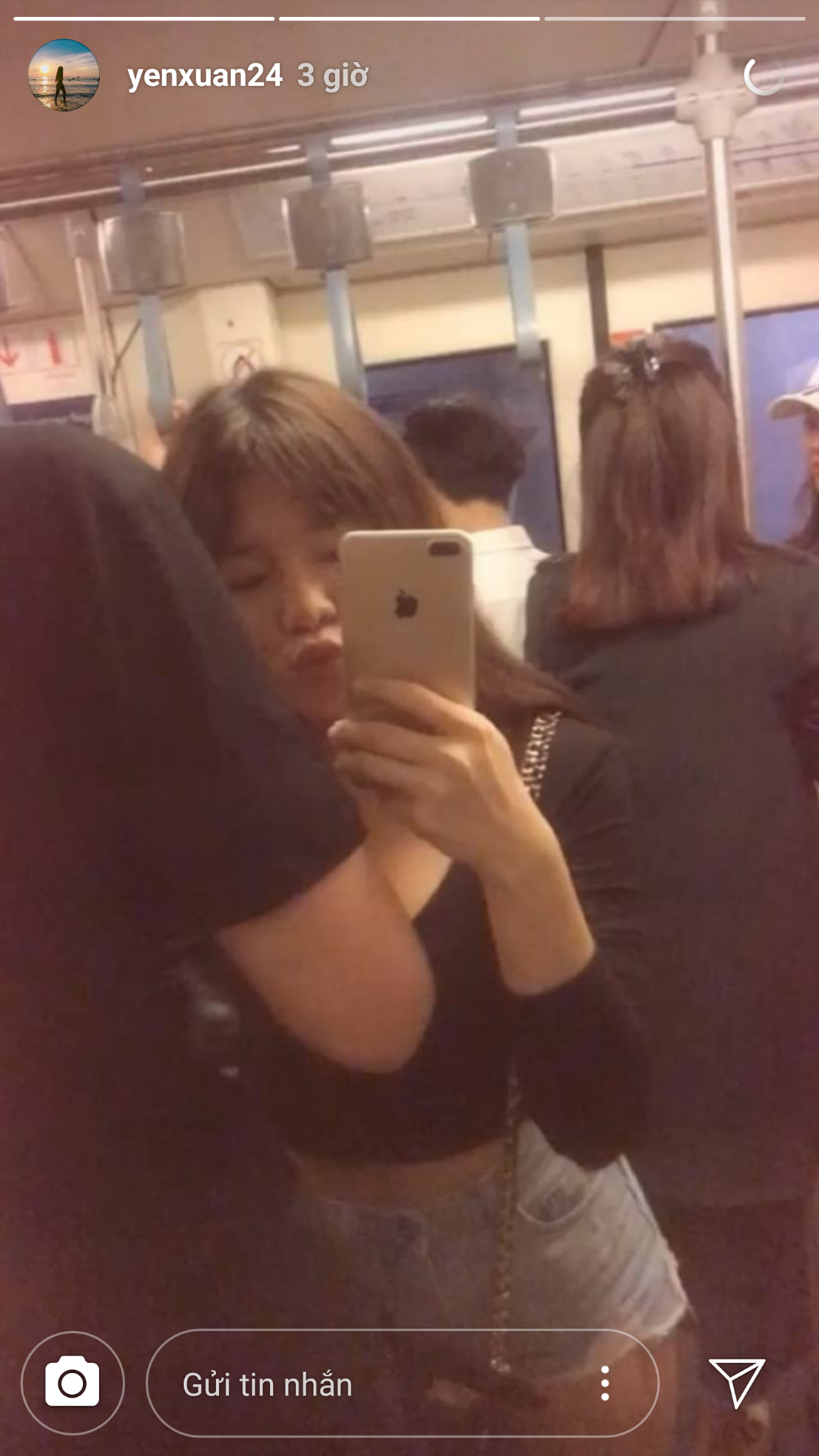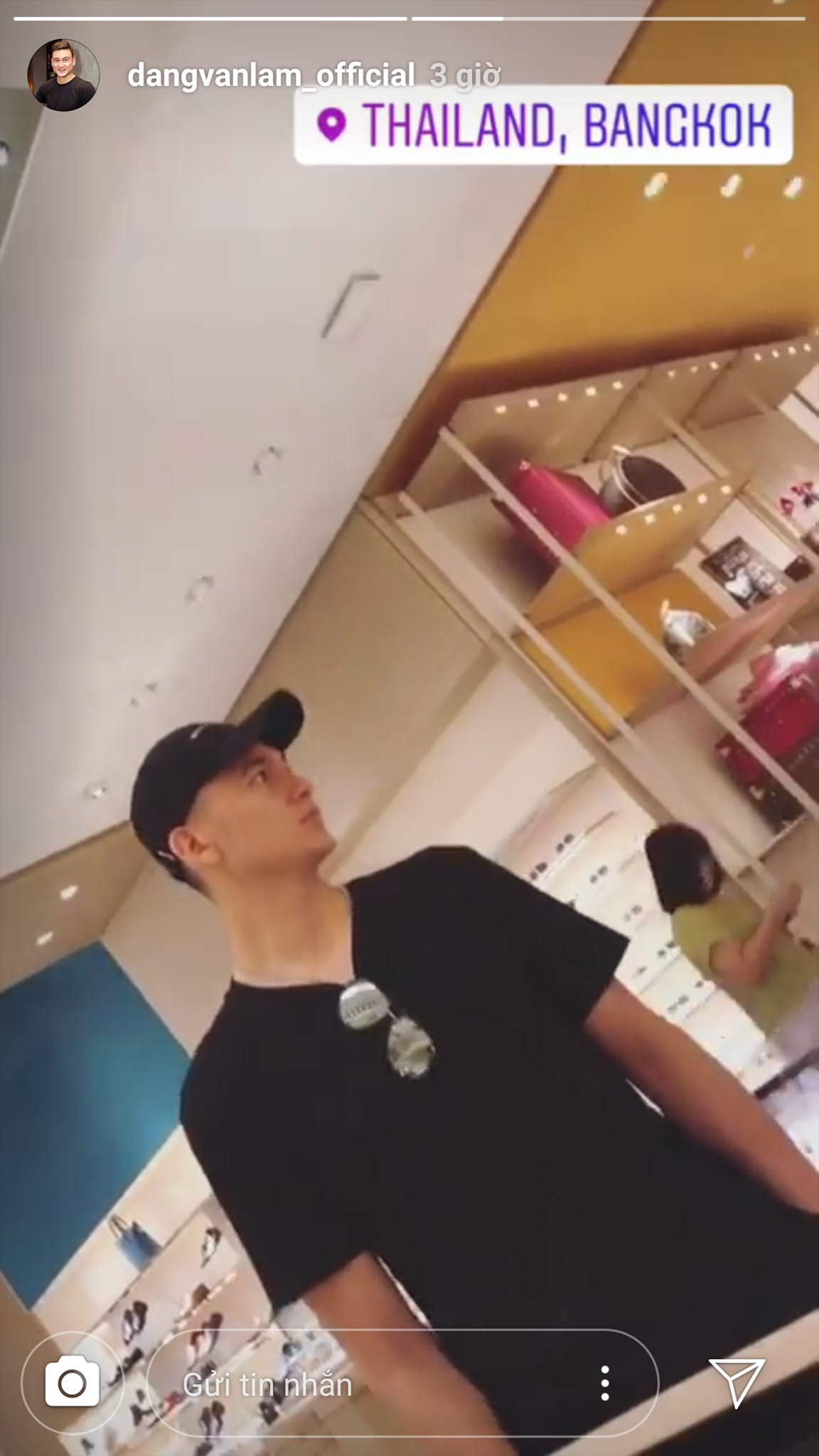 Bằng chứng là cả 2 cùng đăng story đi mua sắm tại Bangkok vào cùng một thời điểm, tuy không có ảnh chụp chung rõ rành rành nhưng ai cũng khéo nhận ra chàng trai áo đen mà Yến Xuân ôm chặt chính là chàng "gấu Nga" cao lớn.