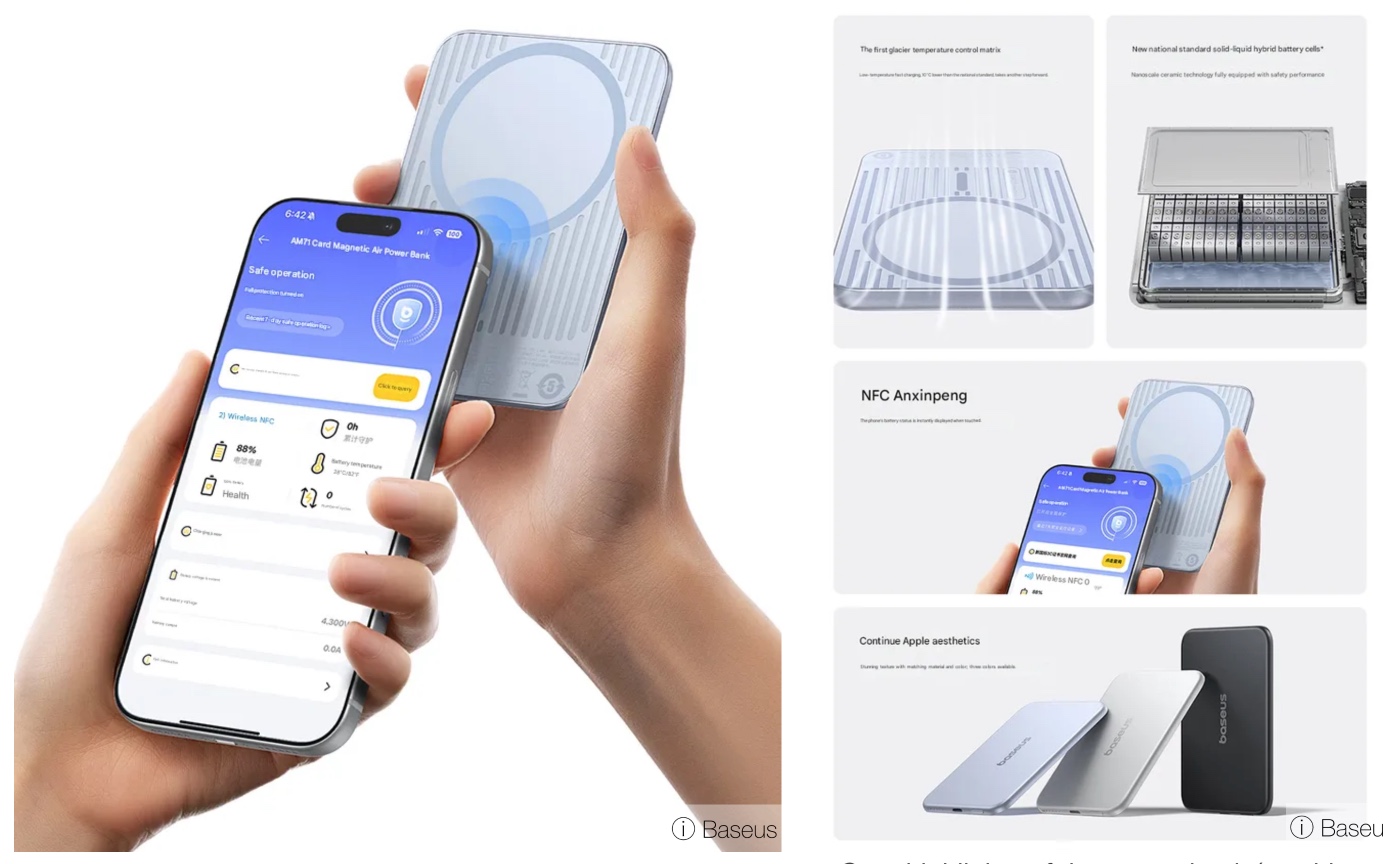 Về ngoại hình, Baseus lựa chọn phong cách bo cong chữ R lấy cảm hứng từ Apple, cùng ba tùy chọn màu sắc hoàn thiện kim loại và hệ nam châm tích hợp được quảng bá có lực hút mạnh, giúp thiết bị bám chắc vào mặt lưng điện thoại.