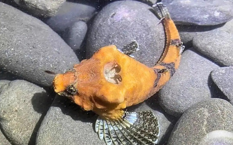 Loài cá nhỏ bé, có lớp giáp cứng và hình dáng ngụy trang hoàn hảo như một hòn đá này sở hữu một đặc điểm không giống ai: trên đỉnh đầu của nó là một cái hố sâu, nhẵn thín. Nó trông như thể ai đó đã dùng muỗng múc kem để lấy đi một mảng xương sọ quan trọng rồi bỏ đi.