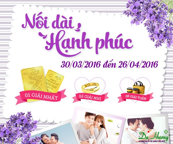 Thông tin chương trình Chương trình “Nối dài hạnh phúc” đồng hành bởi Dạ Hương diễn ra từ ngày 30/3/2016 đến hết ngày 26/04/2016. Hãy chia sẻ câu chuyện về hành trình yêu thương của bạn và nhận nhiều phần quà hấp dẫn! |