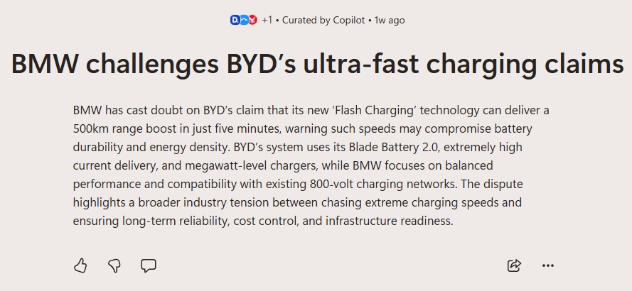 BMW công khai nghi ngờ công nghệ sạc siêu tốc của BYD, cho rằng việc đẩy tốc độ sạc lên quá cao sẽ vi phạm định luật vật lý, làm giảm tuổi thọ pin và gây mất an toàn.