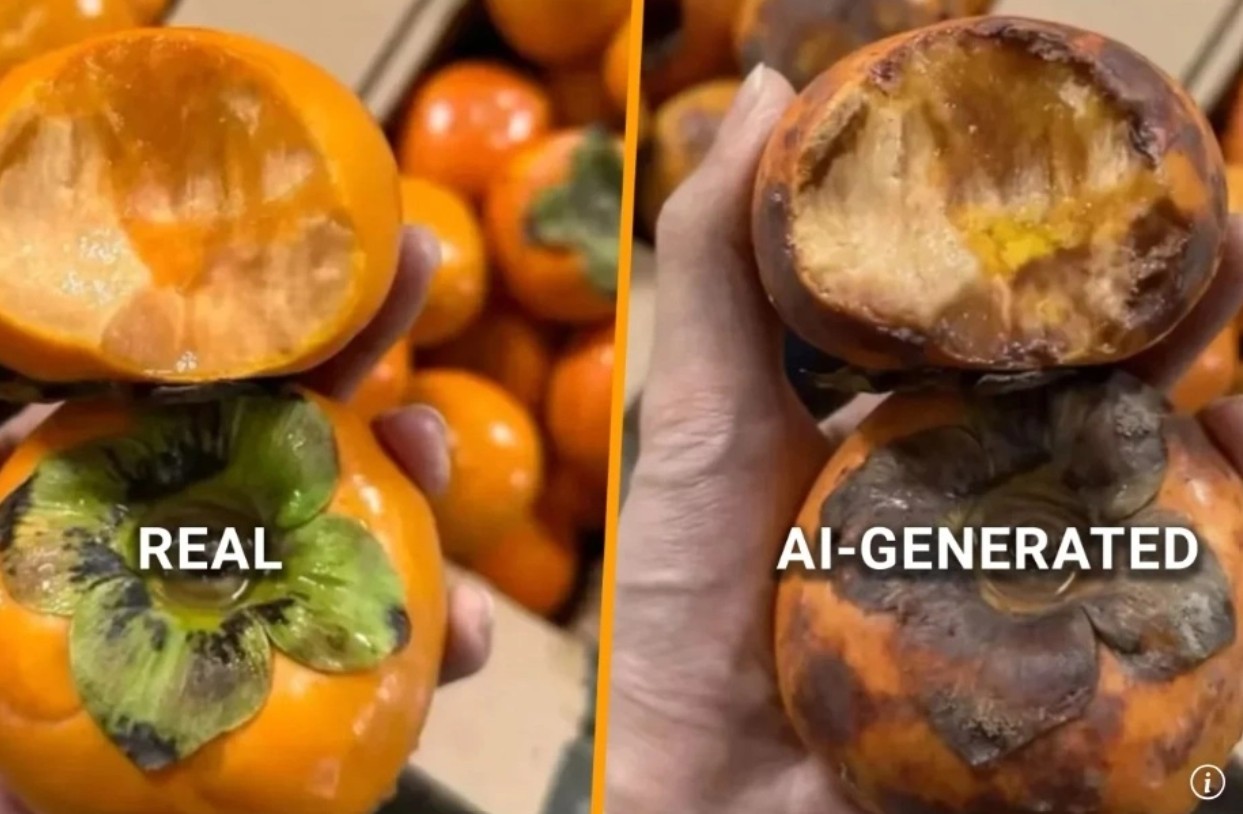 Hình ảnh thật của quả hồng và ảnh AI tạo - Ảnh: SCMP