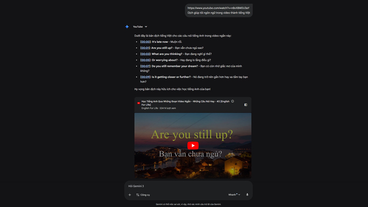 So với việc xem video và tự tra cứu từng câu, cách dịch video bằng Gemini làm này giúp tiết kiệm đáng kể thời gian và công sức.