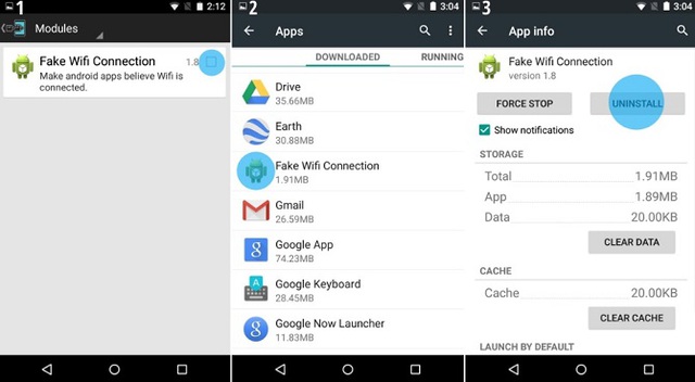 Bước 4: Nếu như không thích sử dụng mô-đun nữa, người dùng cần mở Xposed Installer -> vào phần Modules và bỏ đánh dấu Face Wifi Connection. Tiếp đến, người dùng cần truy cập menu Cài đặt (Settings) -> di chuyển tới mục Ứng dụng (Apps). Chọn Face Wifi Connection và nhấn Xóa bỏ (Uninstall).