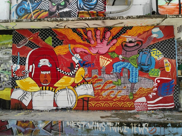 Một bức tường phong cách graffiti nổi bật và đầy ngộ nghĩnh.
