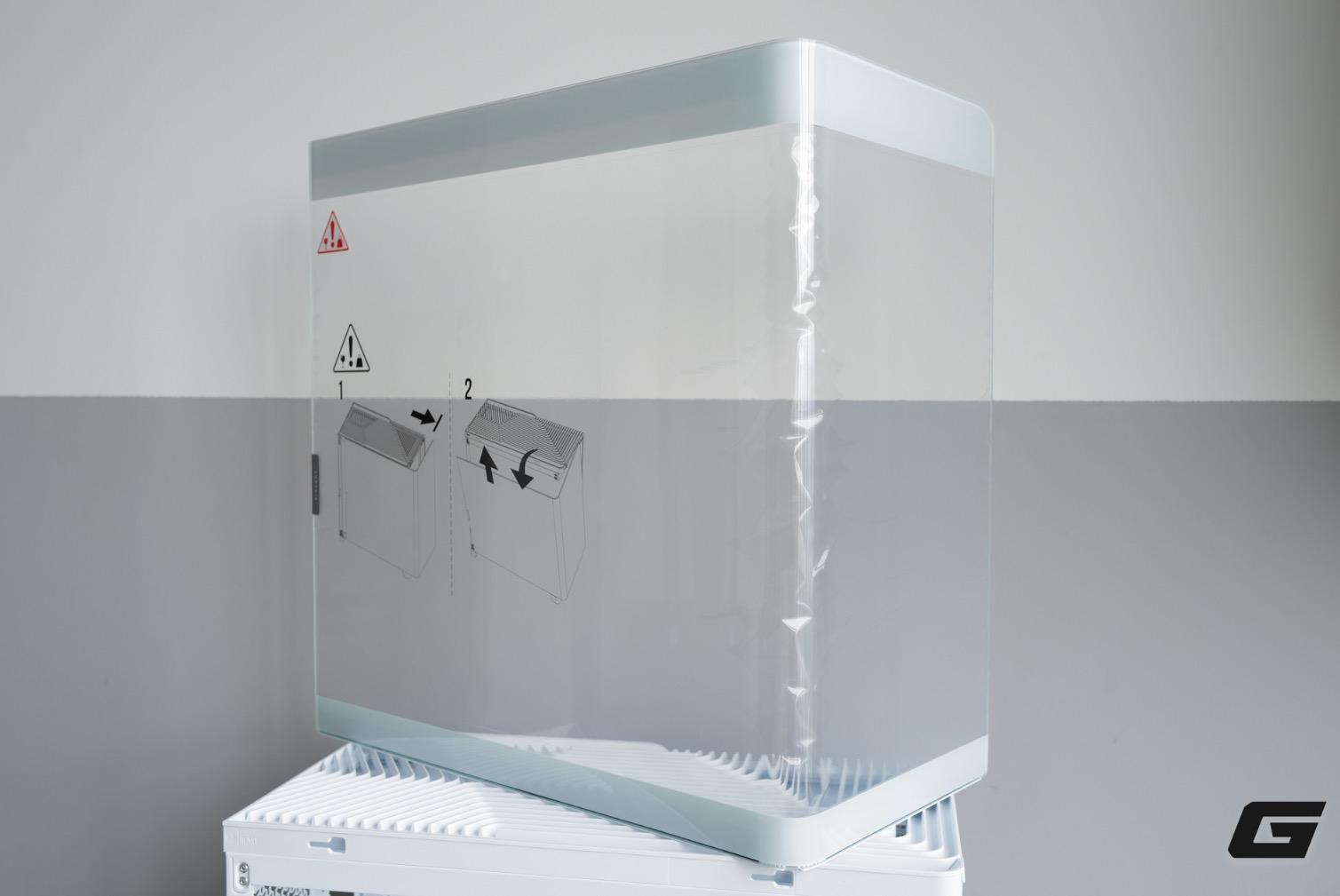 Ở mép kính, Corsair thêm một dải cao su nhỏ có logo thương hiệu, vừa giúp cầm nắm dễ hơn, vừa đóng vai trò như chi tiết trang trí. Ngoài ra, hãng cũng cẩn thận dán hướng dẫn cách mở phần mặt kính.
