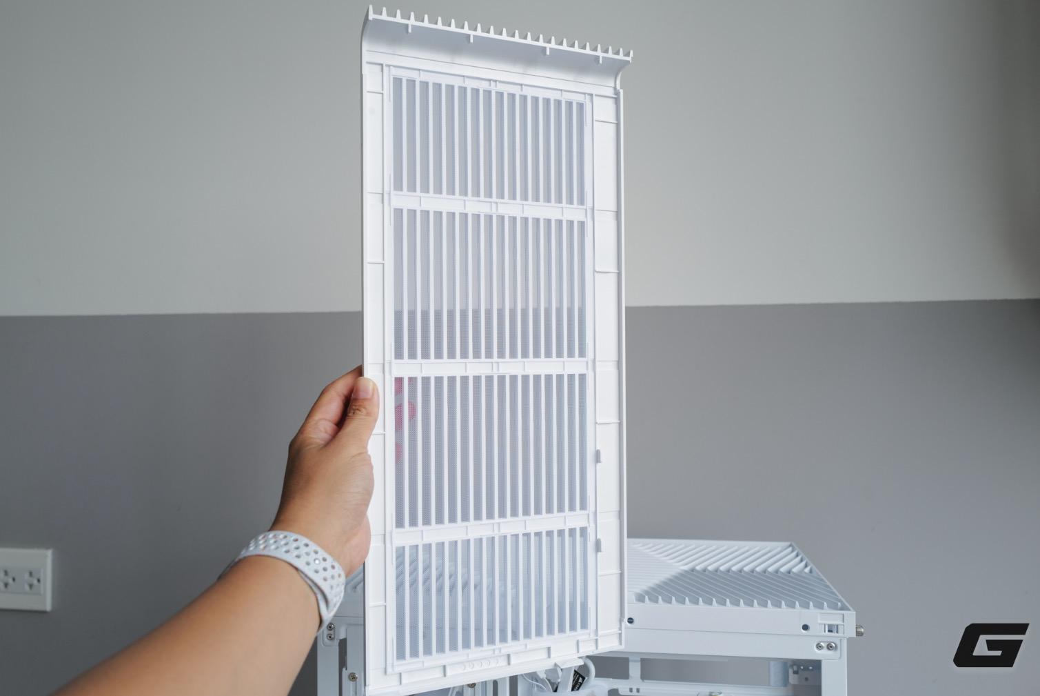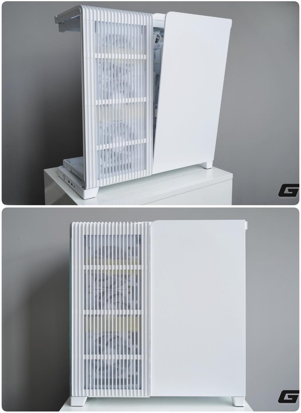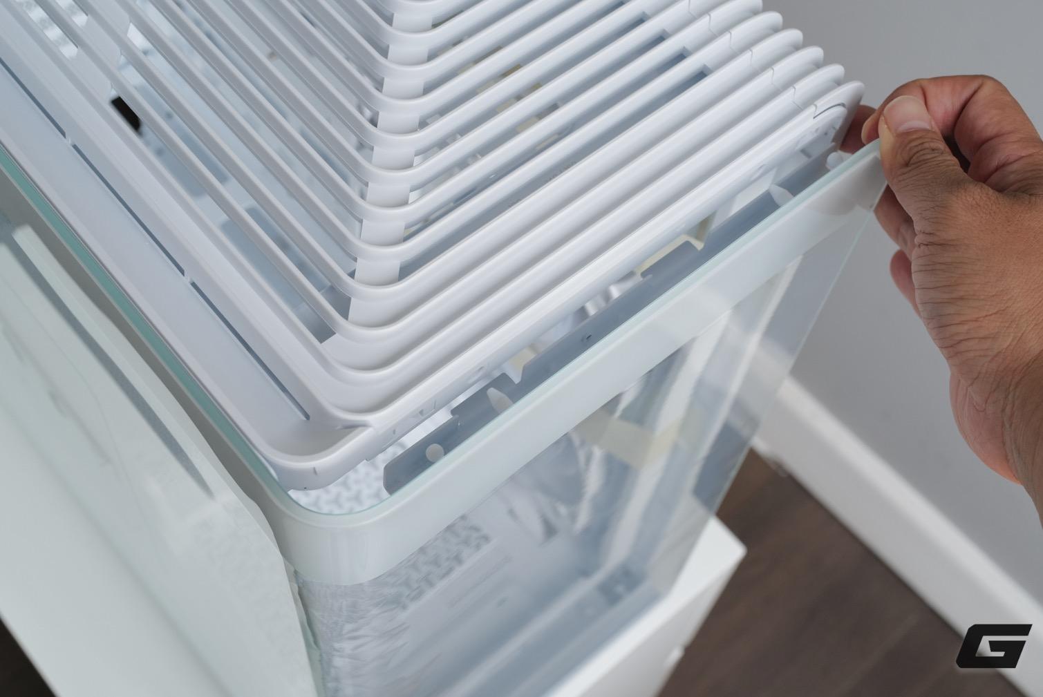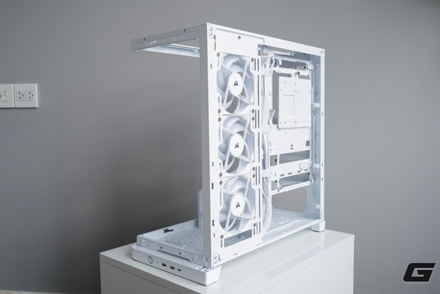 Do cấu trúc, nắp trên không thể tháo rời nếu chưa gỡ ba tấm panel chính; tuy hơi khác thường so với các case truyền thống, nhưng thực tế thao tác này không quá bất tiện.