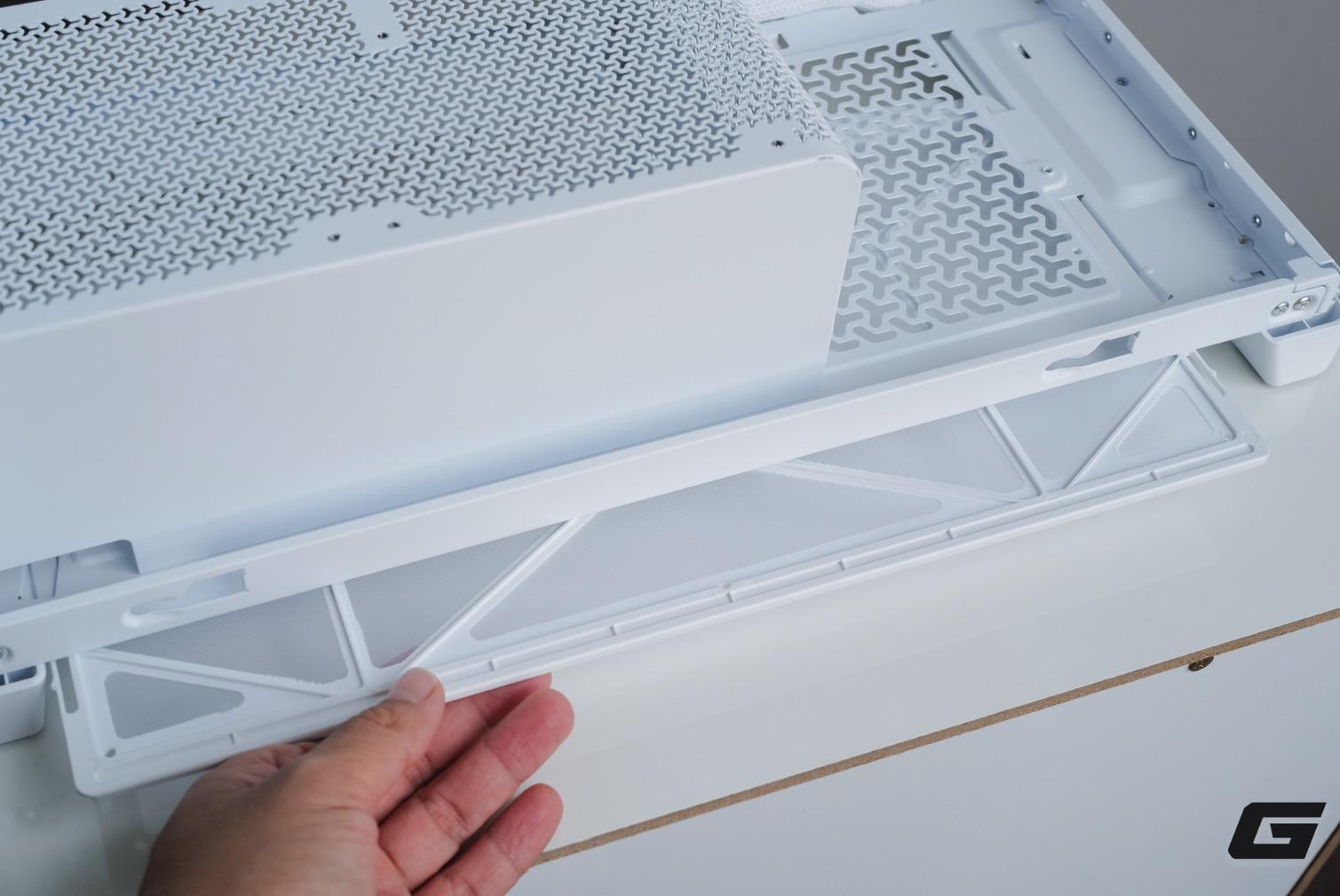 Mặt dưới của FRAME 4500X RS-R ARGB được trang bị lưới lọc bụi mịn, có thể kéo trượt sang bên để vệ sinh dễ dàng.