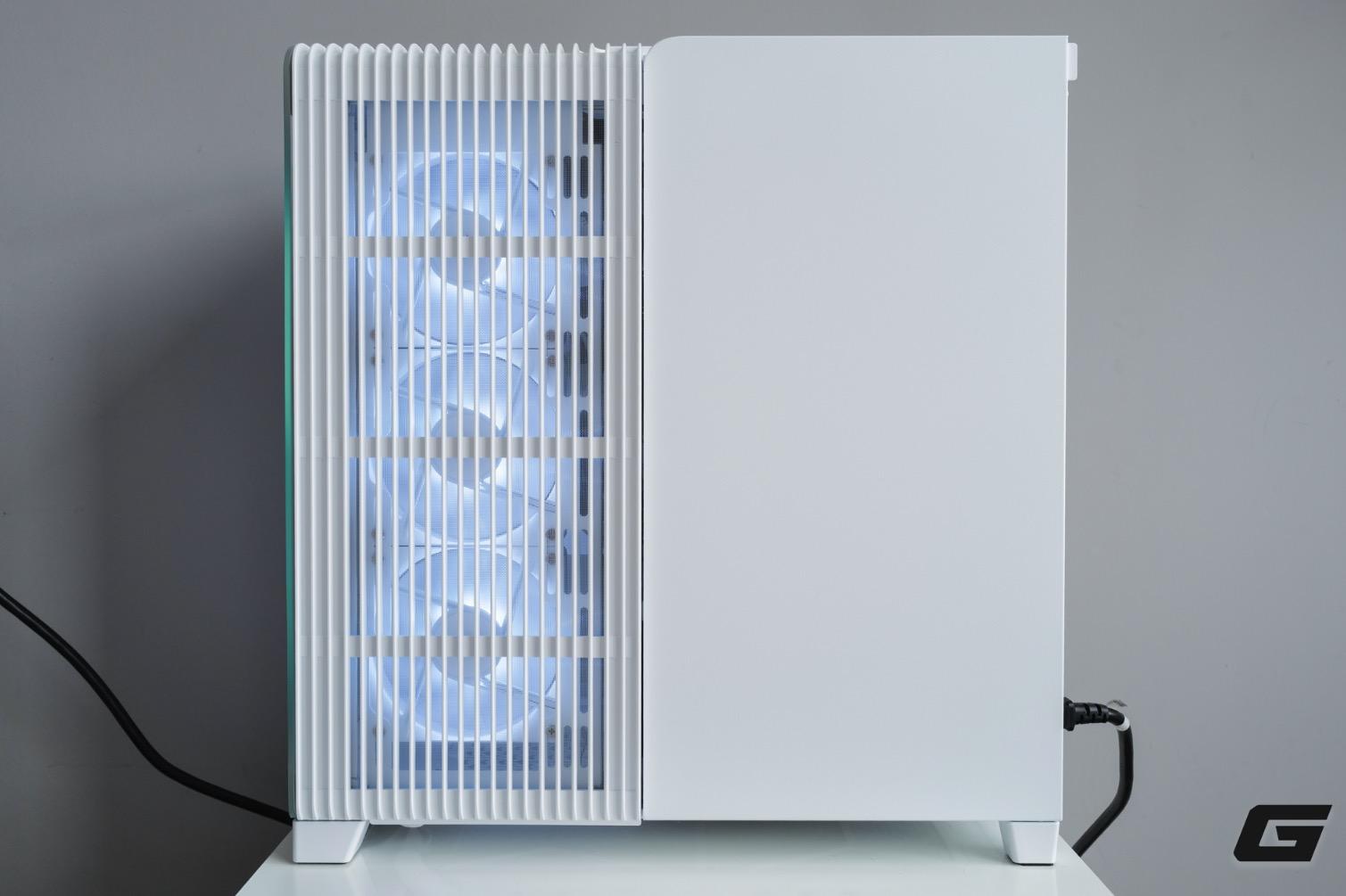 Ở mặt còn lại, ba quạt phía trước với LED trung tâm tạo nên hiệu ứng ánh sáng đẹp mắt, giúp nhấn mạnh tính đồng bộ của toàn hệ thống khi nhìn từ hông máy.
