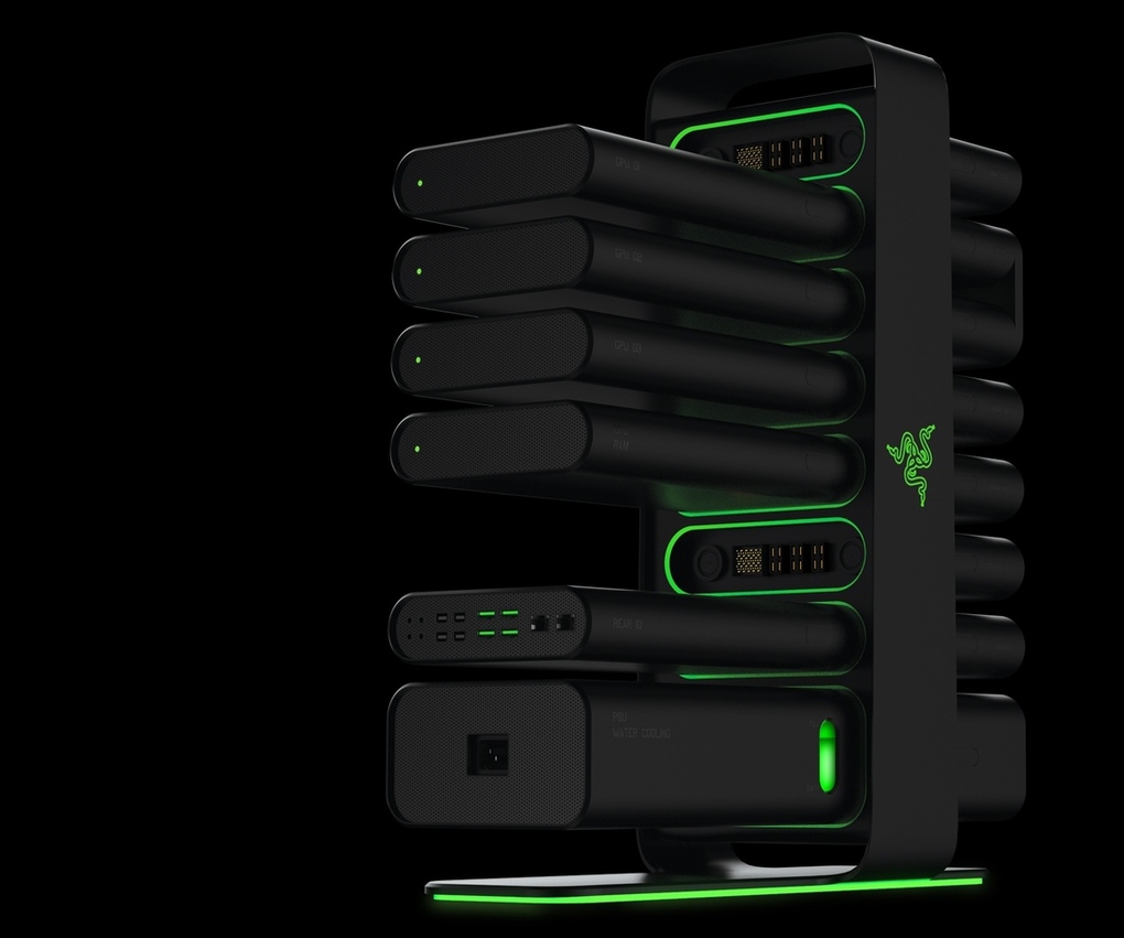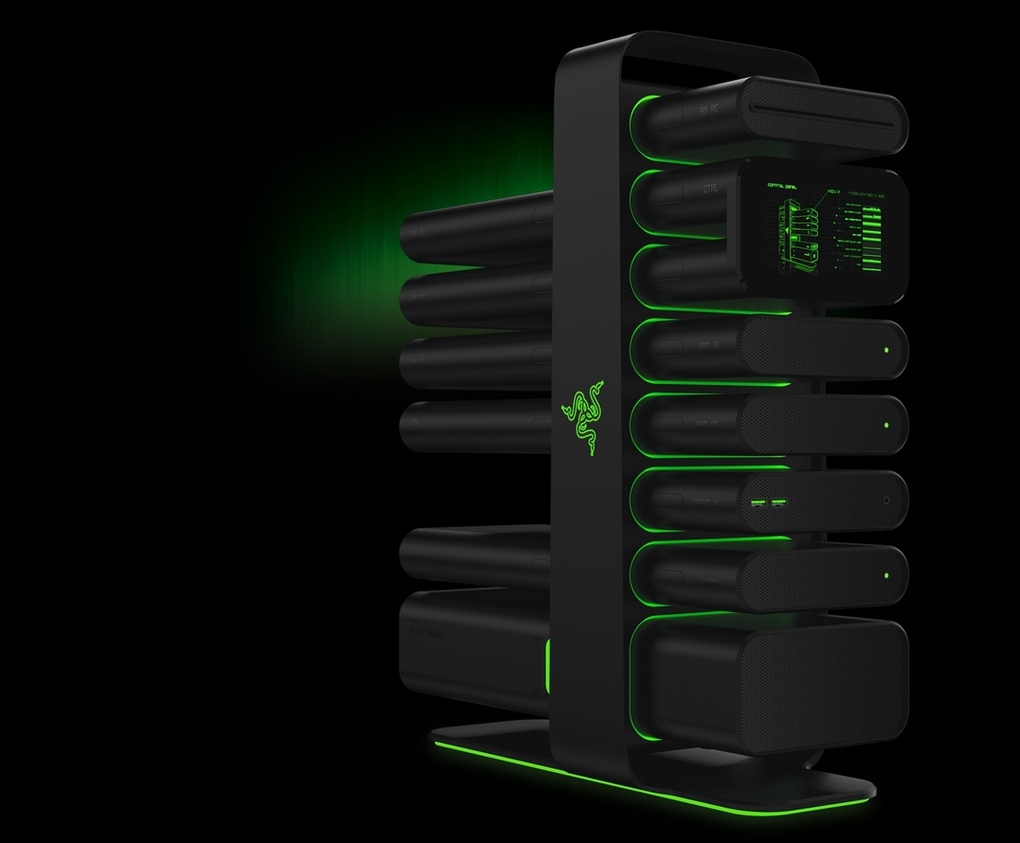 Khi cần nâng cấp card đồ họa hay ổ cứng cho máy, bạn chỉ cần đút thêm một khay đựng card vào bộ khung, hay tháo khay ổ cứng hiện tại và cắm vào khay ổ cứng mới với dung lượng cao hơn. “Module được bổ sung qua giao tiếp PCI-Express cho phép người dùng dễ dàng trong việc nâng cấp. Bạn có thể sử dụng tới 4 card đồ họa nhờ công nghệ SLI, cấu hình RAID cho ổ cứng..." - Đại diện Razer cho biết.