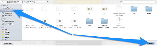 Tiếp theo bạn sẽ được hỏi về nơi lưu tập tin APK được chuyển đổi bởi Twerk. Hãy chọn vị trí mà bạn thấy cần thiết và nhấn Select.
