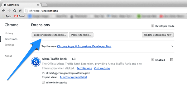 Sau đó nhấn vào nút Load unpacked extension…