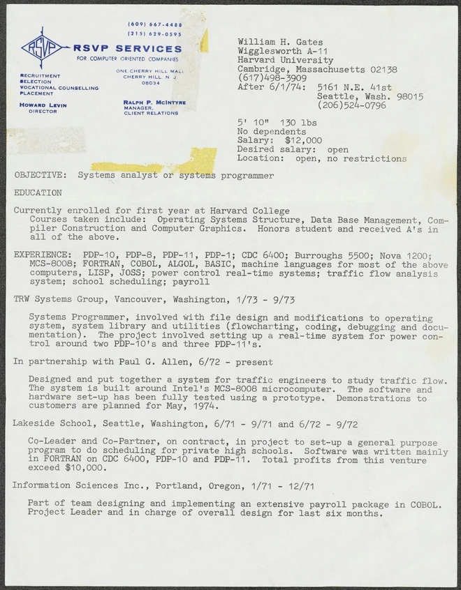 Chiếc CV cách đây 50 năm Bill Gates bị đào lại, nhìn số tiền ông kiếm được năm 20 tuổi ai cũng thốt lên: "Hoá ra là tỷ phú từ thời sinh viên"