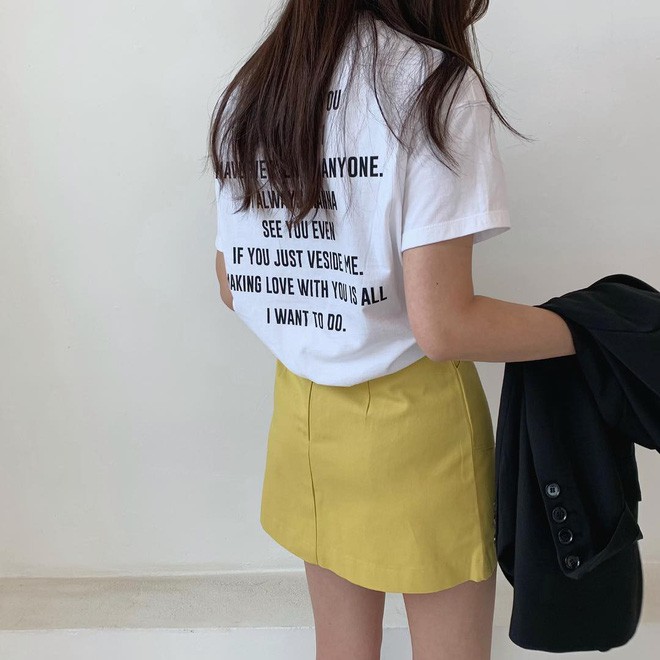 Nàng nào thích diện áo phông nhưng vẫn muốn trông mình phải điệu đà, nữ tính thì áo phông và chân váy chính là phép cộng hoàn hảo. Trong tiết trời giao mùa mát mẻ này, lý tưởng nhất chính là chân váy midi với chất liệu vải dày dặn một chút, muốn yểu điệu hơn nữa thì bạn hãy chọn chân váy hoa, chân váy xếp li. Nếu sợ lạnh, hãy mặc thêm một chiếc áo khoác mà bạn thích, có thể là blazer mỏng hay denim jacket.