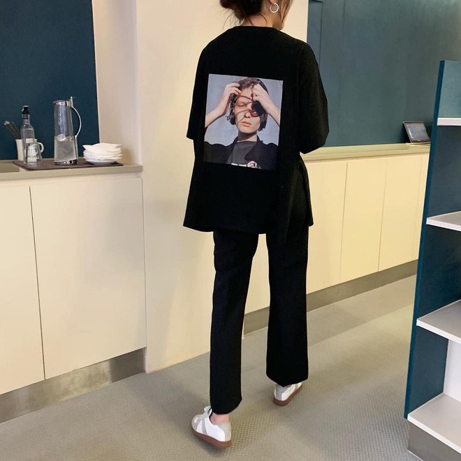 Cái hay của áo phông oversize là bạn có thể phối chúng theo rất nhiều kiểu mà kiểu nào cũng đáp ứng hai tiêu chí: cool và thoải mái. Nói đến áo phông oversize, nhiều cô nàng sẽ nghĩ ngay đến công thức "giấu quần" nhưng trong tiết trời giao mùa thi thoảng vẫn có chút se lạnh này, đây có lẽ không phải một ý hay. Thay vào đó, bạn hãy thử diện áo phông oversize với một chiếc quần dài bất kỳ, có thể là quần tây hay quần jeans và đừng nghĩ đến việc sơ vin mà hãy thả áo ra ngoài. Công thức này tưởng luộm thuộm nhưng lại vô cùng cá tính, phóng khoáng và thực sự là gợi ý "đổi gió" hay ho nếu bạn thường xuyên "đóng bộ" một cách nghiêm chỉnh. Với set đồ này, giày sneaker là dễ đi hơn cả nhưng nếu muốn nhấn nhá vẻ kiểu cách, sành điệu, bạn hãy trưng dụng đôi boot cao gót của mình nhé.