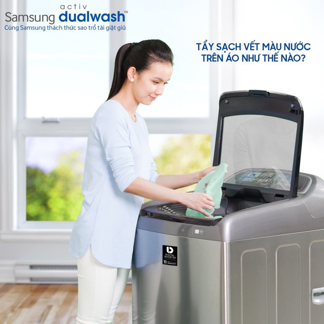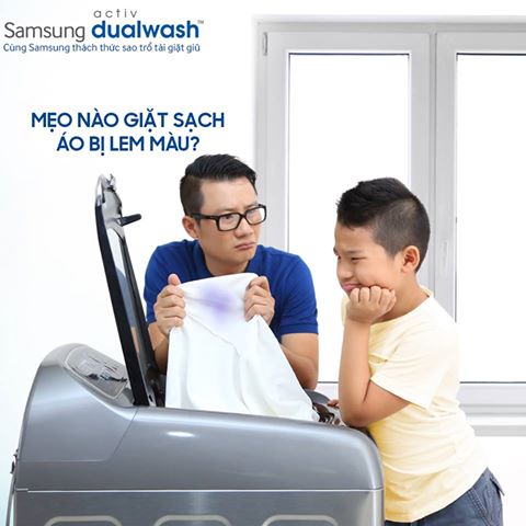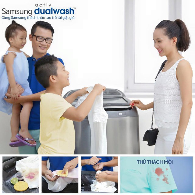 Chương trình “Cùng Samsung thử thách sao trổ tài giặt giũ” diễn ra trong 4 tuần từ 18/5 đến 14/6/2015 tại www.facebook.com/SamsungVietnam có sự tham gia của bốn ông bố, bà mẹ nổi tiếng: Hoa hậu Thùy Lâm, ca sĩ Hoàng Bách, MC Thanh Thảo và nhà văn Phan Anh. Nhiệm vụ của họ là phải tìm ra giải pháp vừa hữu hiệu vừa đơn giản để xử lý một vết bẩn khó chịu và kêu gọi fan đóng góp giải pháp để chinh phục thử thách đó. Hàng tuần, chủ nhân của mẹo hay được các ngôi sao chọn lựa sẽ nhận được quà tặng hấp dẫn là chiếc máy giặt Samsung Active Dualwash thế hệ mới trị giá 7.990.000 đồng. |