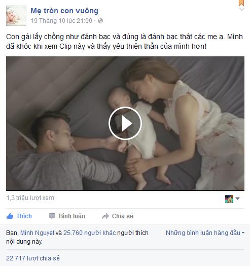 Ngay khi xuất hiện, đoạn phim đã được chia sẻ trên các fanpage lớn như 2!Idol, Góc thư giãn, Mẹ tròn con vuông hay KidsPlaza.vn… Nó đã thu hút lượng view cực khủng với hơn 6 triệu lượt xem, hơn 140.000 lượt thích (like) và hơn 100.000 lượt chia sẻ (share).