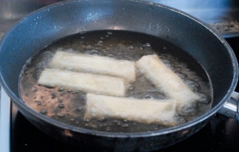 Đun sôi dầu, thả chả giò vào chiên vàng.