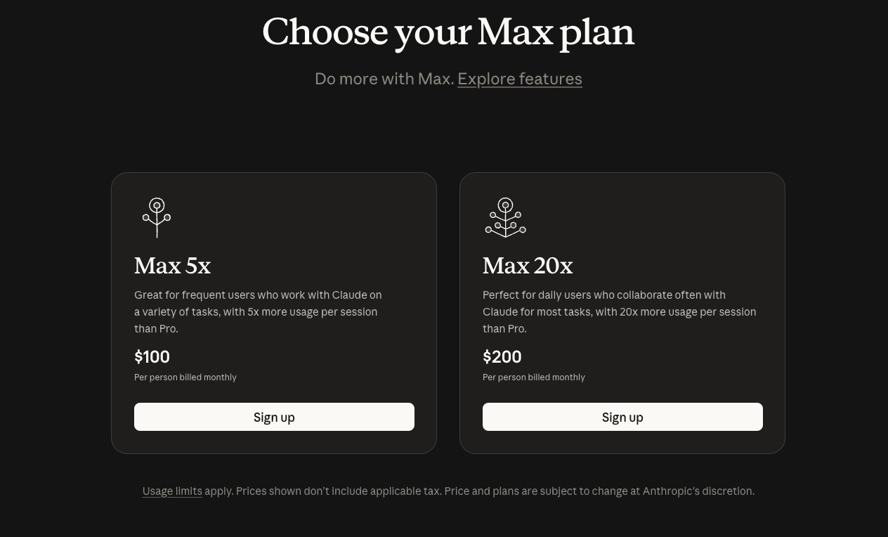 Các mức giá gói Claude Max