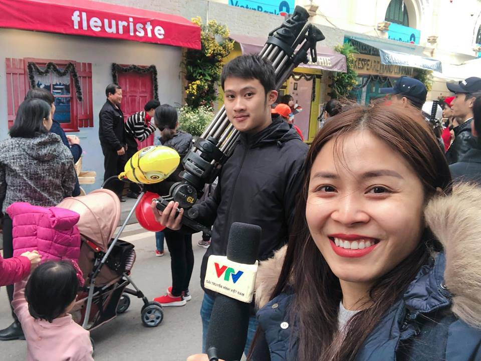 Hôn phu Mạnh Hùng còn hộ tống cô như hình với bóng, đi tác nghiệp cùng nhau.