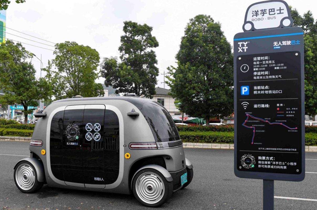Một chiếc xe buýt tự lái chạy ở thành phố Quý Dương, tỉnh Quý Châu, phía tây nam Trung Quốc. Ảnh: Jia Zhi