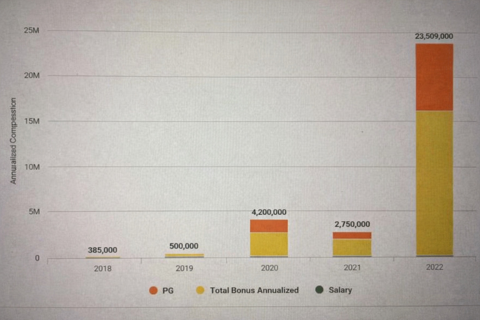 Hai năm trước, trên một diễn đàn ẩn danh tại Bắc Mỹ bất ngờ xuất hiện một bài đăng khoe thu nhập cá nhân. Bức ảnh là biểu đồ tăng trưởng lương theo từng năm, bắt đầu từ hơn 300.000 USD vào năm 2018, tăng lên 500.000 USD vào năm 2019, gần 1 triệu USD vào năm 2020 và đến năm 2022 thì vọt lên con số gây choáng 23,5 triệu USD.