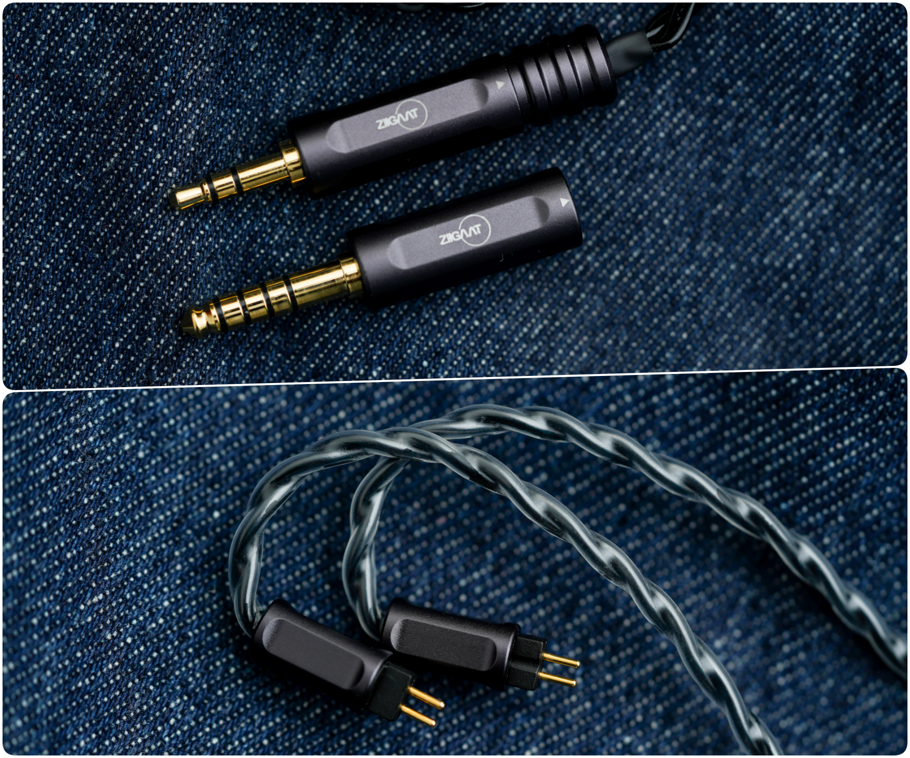 Sợi dây kết nối có đầu cắm có thể chuyển được giữa 3.5mm và 4.4mm Balanced, và đầu gắn vào tai nghe thì vẫn là chuẩn 2-pin thông dụng.