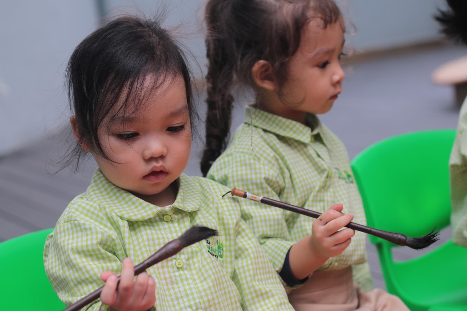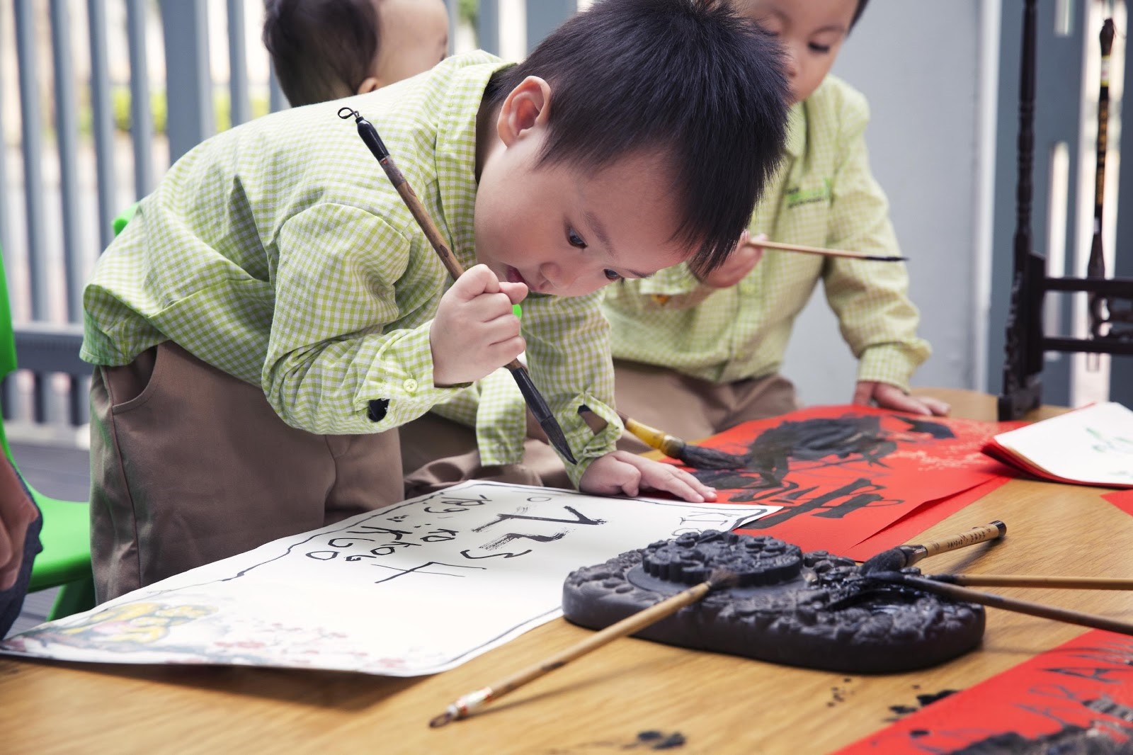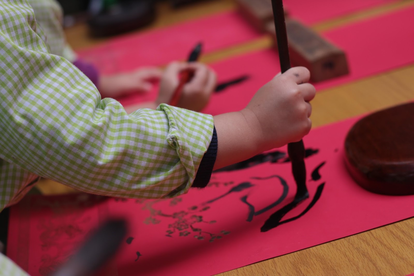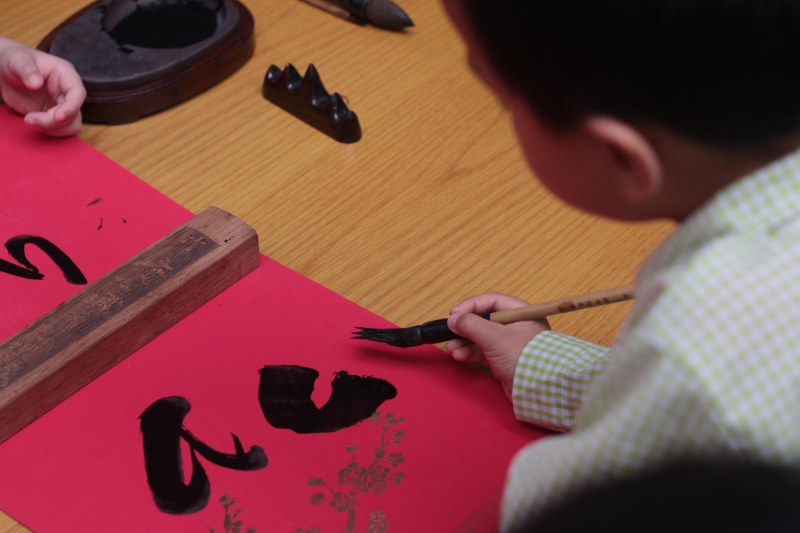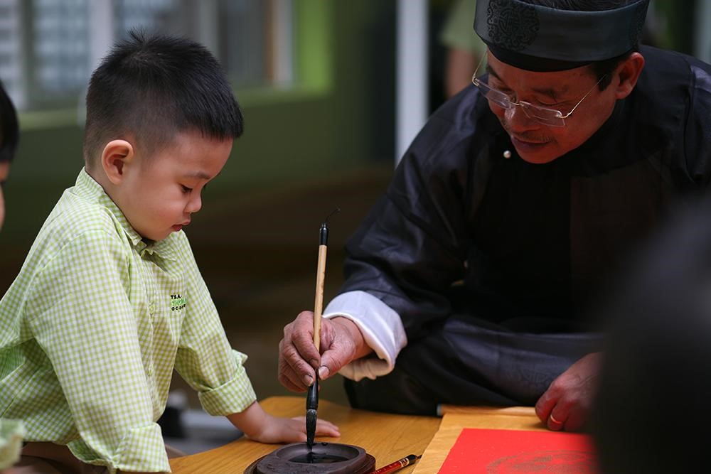 – Hướng dẫn các em nhỏ viết thư pháp
