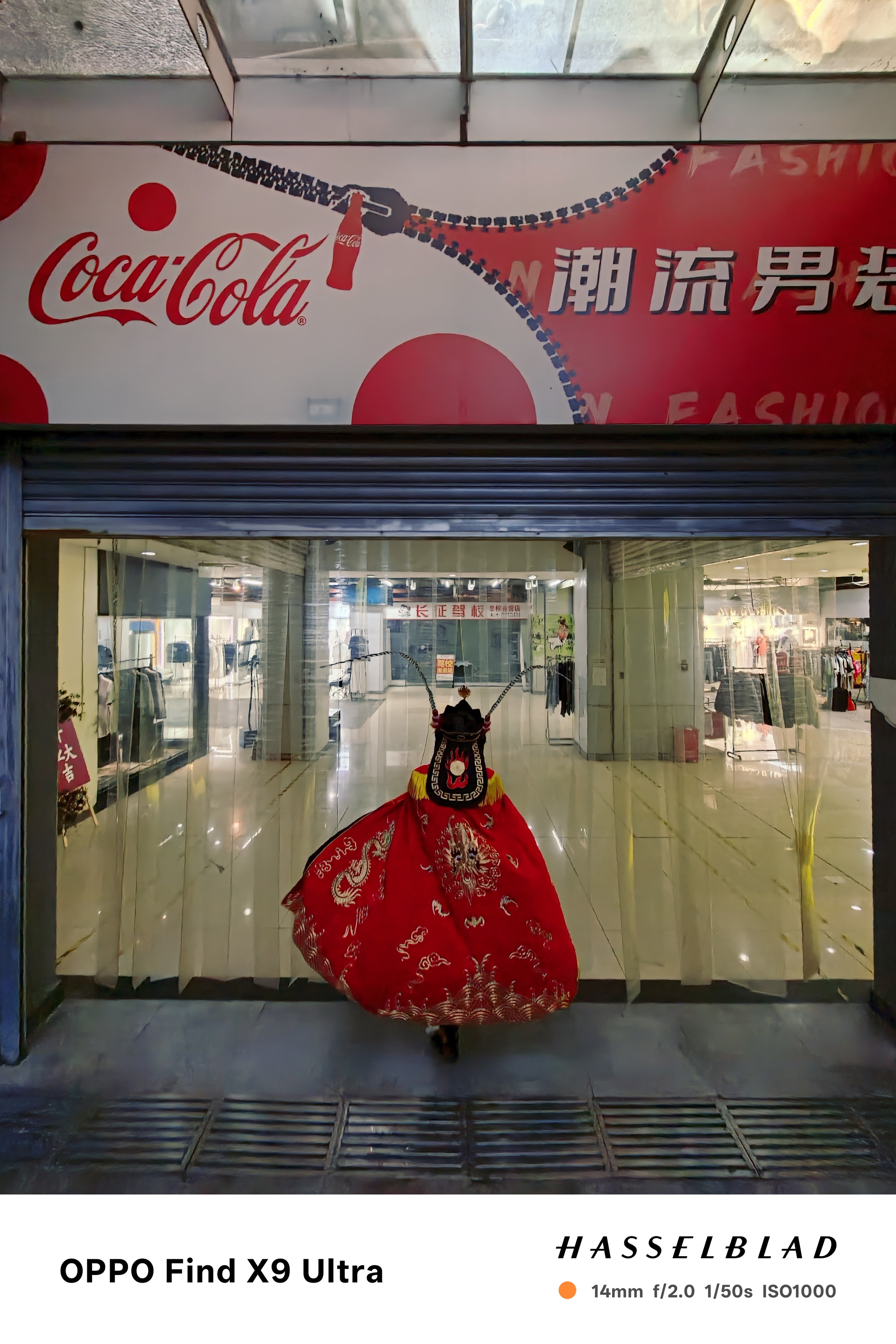 Trong ánh sáng nhập nhoạng, tranh tối tranh sáng của phố thị Thành Đô về đêm, bản năng của một người cầm máy thúc giục tôi rút ngay điện thoại và đuổi theo. Chỉ trong tích tắc, chiếc Find X9 Ultra đã kịp khóa chặt khoảnh khắc anh đang bước vội vào bên trong. Dù điều kiện ánh sáng lúc đó khá ngặt nghèo, chiếc máy vẫn đáp ứng hoàn hảo yêu cầu duy nhất của tôi: bắt dính chuyển động mà không một chút nhòe mờ.