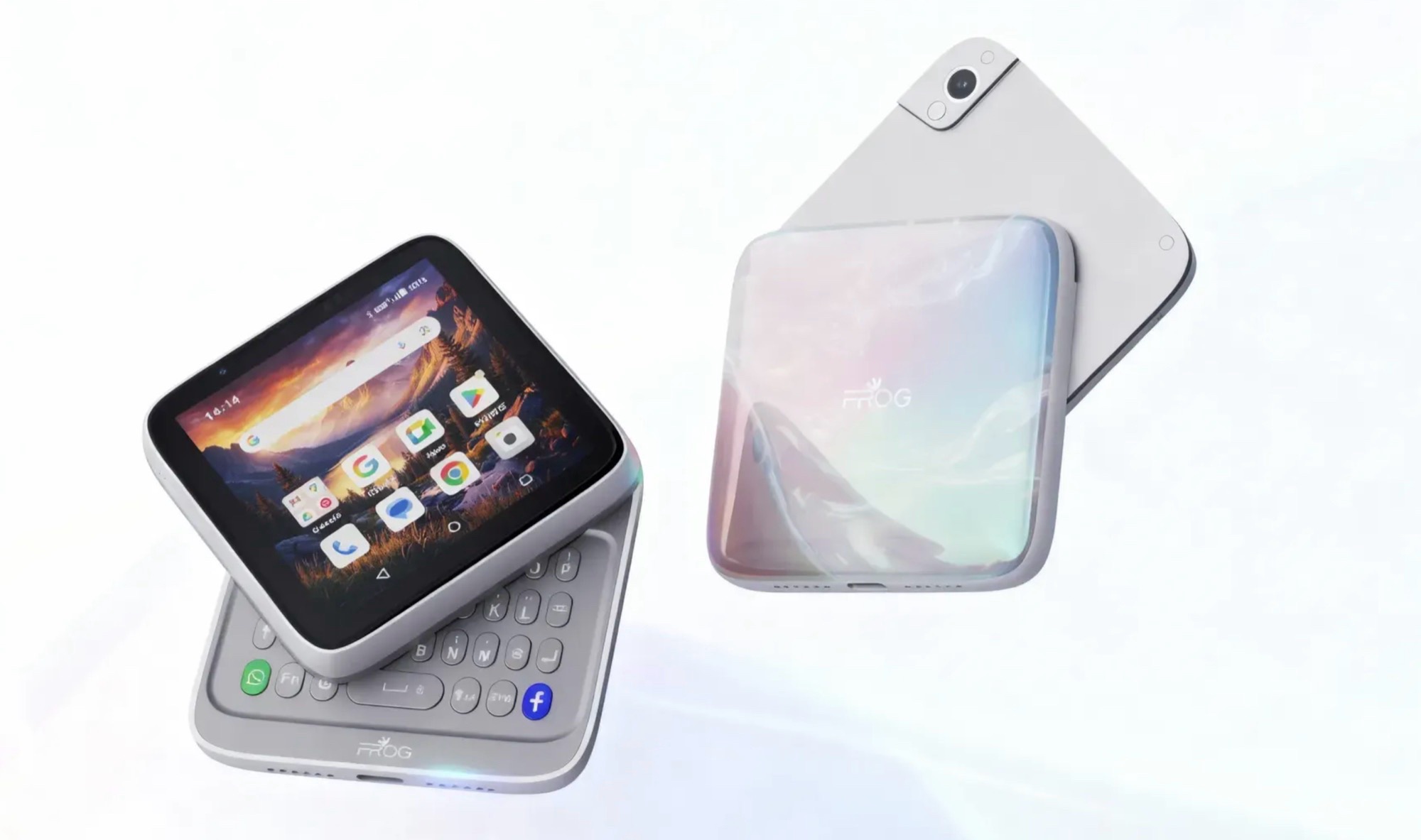 Frog RS1 là chiếc smartphone Android nhỏ gọn với màn hình vuông 3,4 inch, phần thân máy ẩn bên dưới có thể là gamepad hoặc bàn phím vật lý, biến thiết bị thành máy chơi game cầm tay retro thu nhỏ.