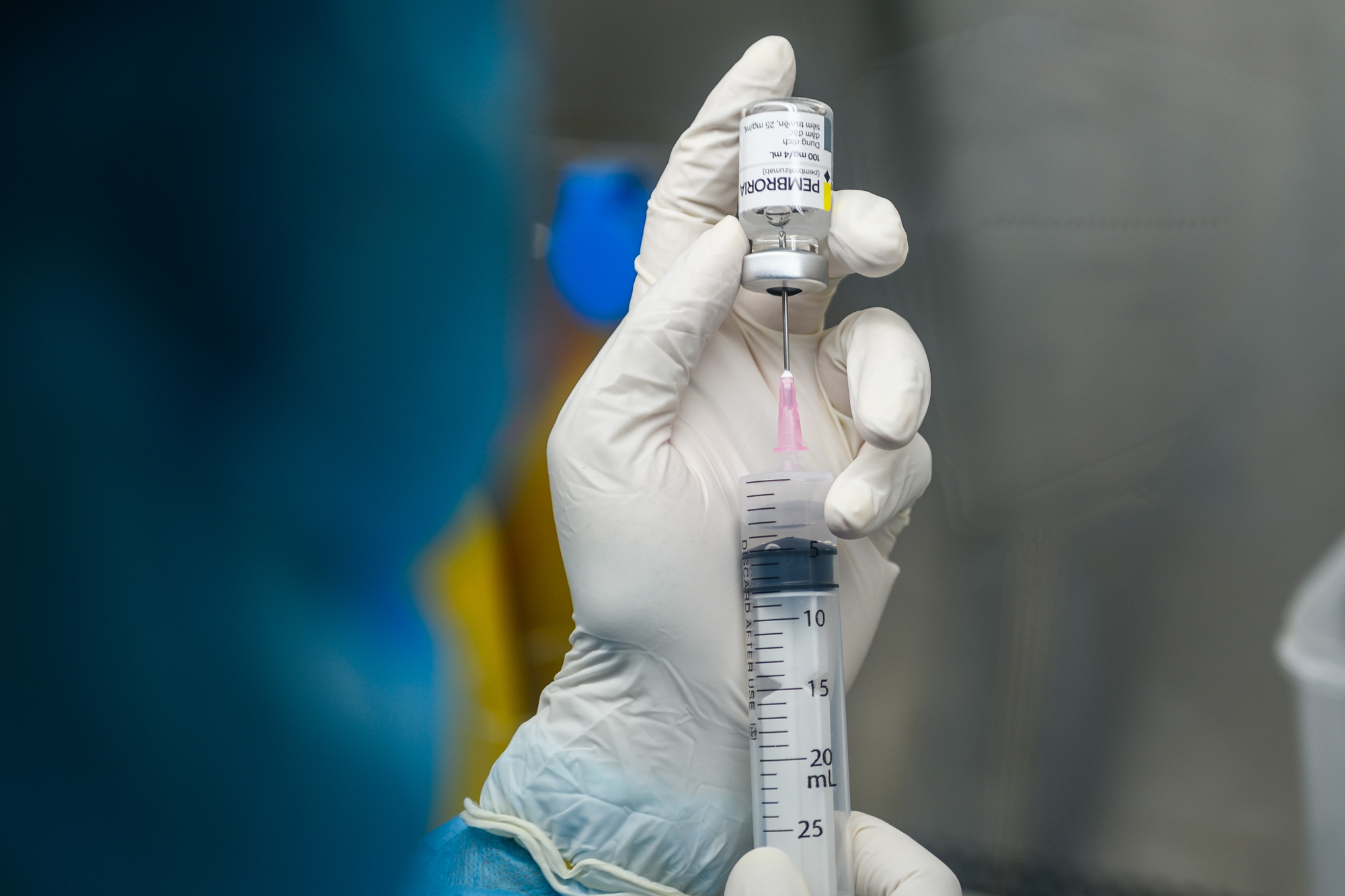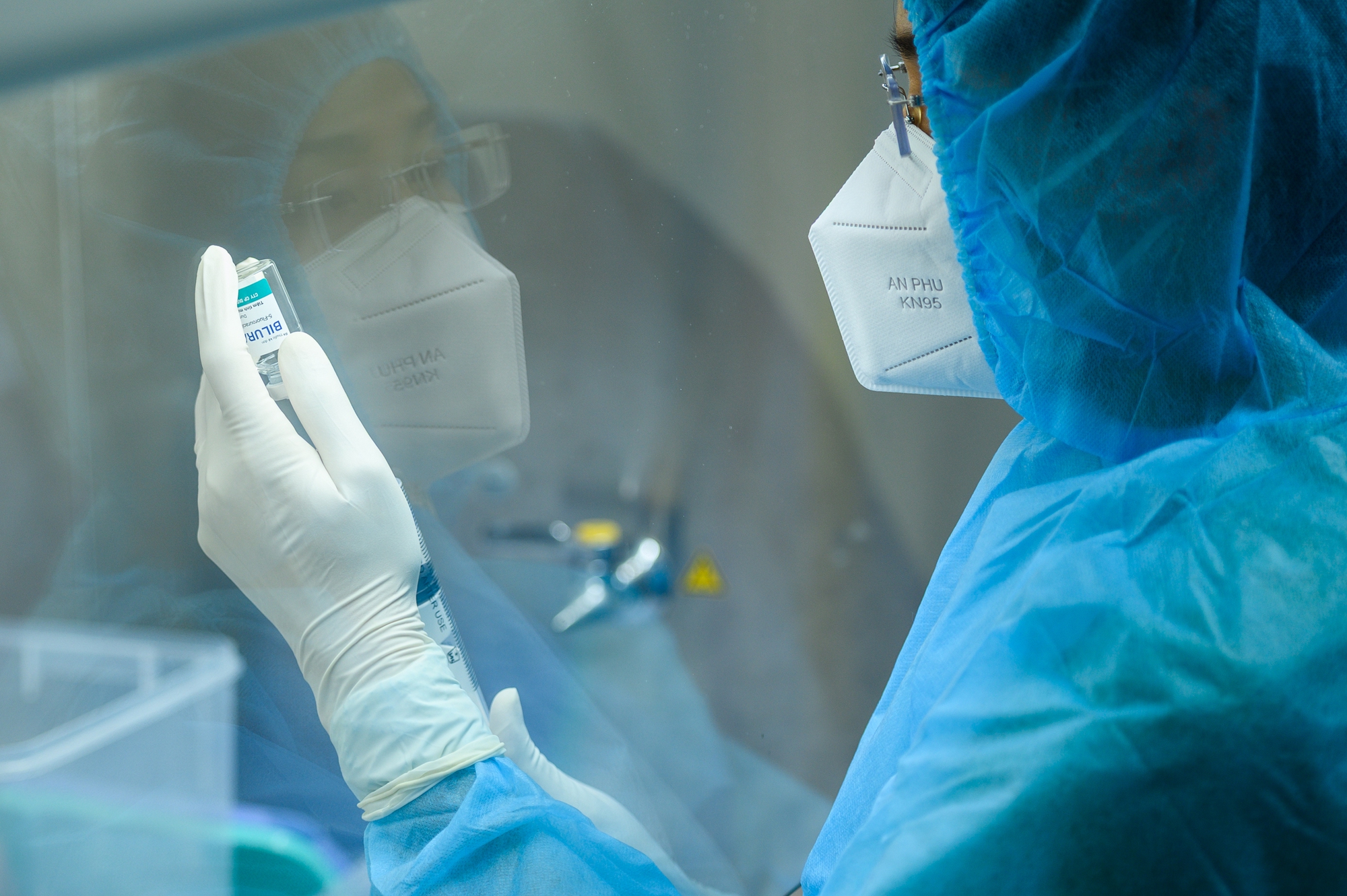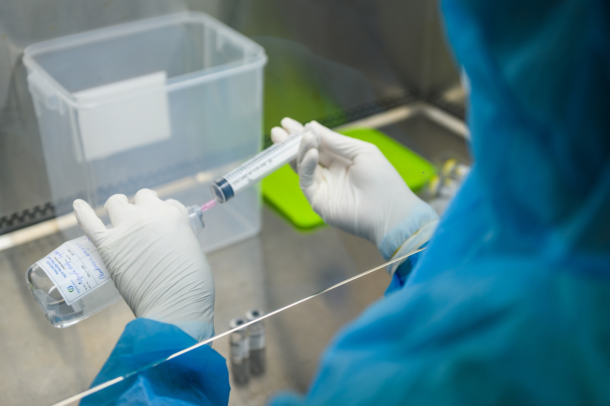 Cận cảnh quá trình pha chế thuốc.
