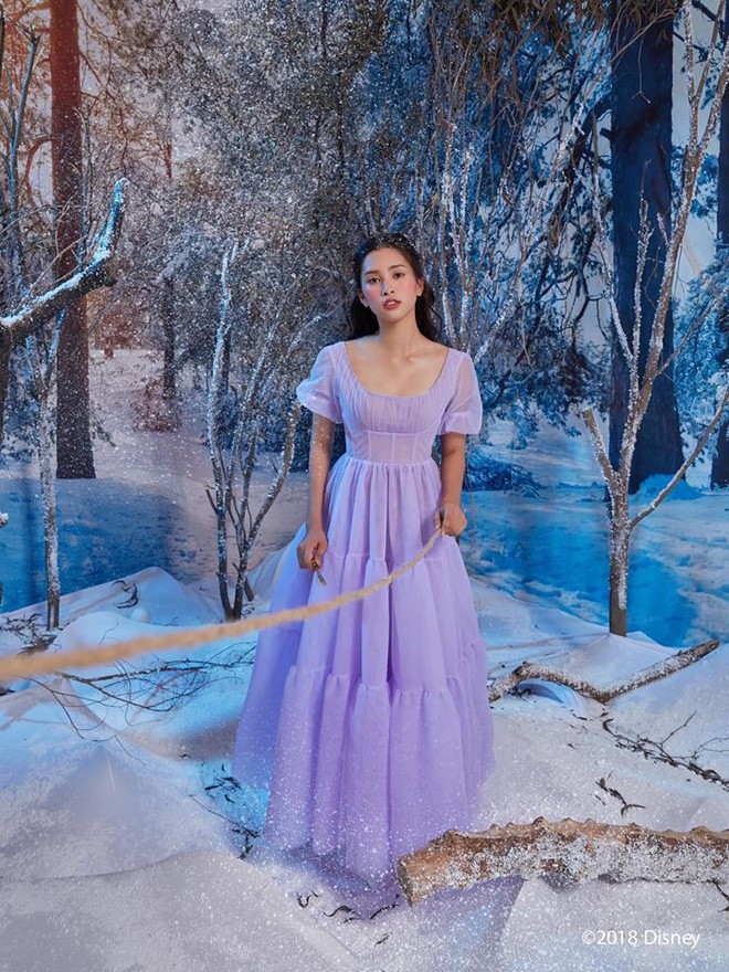Trong bất cứ bộ ảnh nào, từ ảnh chụp váy dạ hội lộng lẫy, kiêu kỳ hay những bộ váy bồng xòe, ngọt ngào như công chúa thì Tiểu Vy cũng trung thành với gương mặt lạnh.