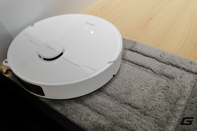 Điểm độc đáo của Aqua10 Roller nằm ở cuộn lăn lau dài 26 cm, vừa hút vừa lau đồng thời với hệ thống phun - hút nước theo thời gian thực. Dreame còn tích hợp AutoSeal, tự động hạ khung chắn để ngăn nước rò rỉ khi đi qua thảm giúp giữ thảm luôn khô ráo.