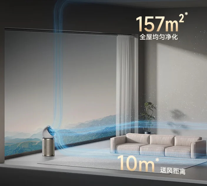 PM Neo sử dụng thiết kế hai ống dẫn khí thông minh, có thể tự động chuyển đổi giữa chế độ gió tập trung và gió khuếch tán, tùy theo chất lượng không khí trong phòng. Lưu lượng khí sạch đạt tối đa 300m³ mỗi giờ, đủ để làm sạch phòng diện tích khoảng 100m² trong 20 phút. Tổng diện tích hỗ trợ có thể lên tới 157m², với tầm thổi gió xa nhất khoảng 10m.